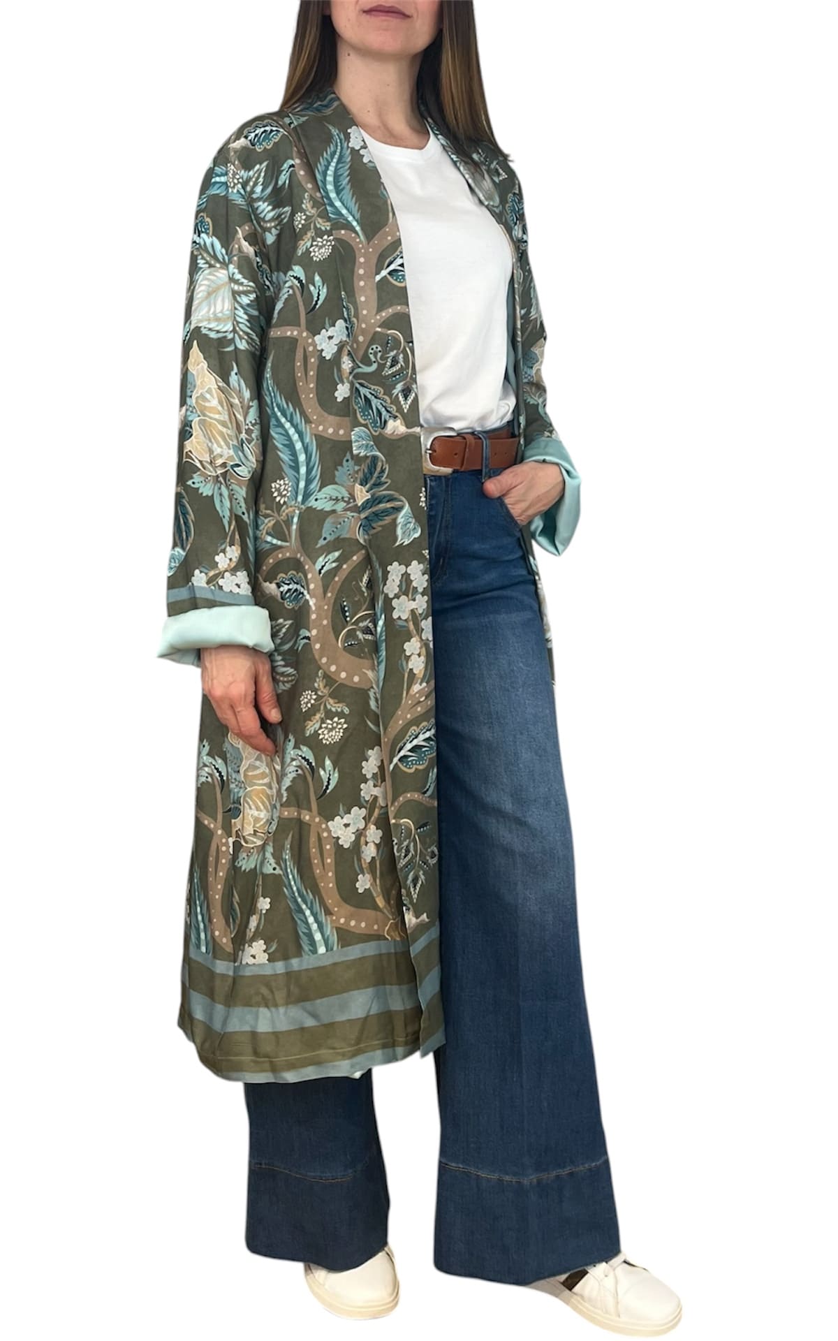 Kimono lungo fantasia con tasche