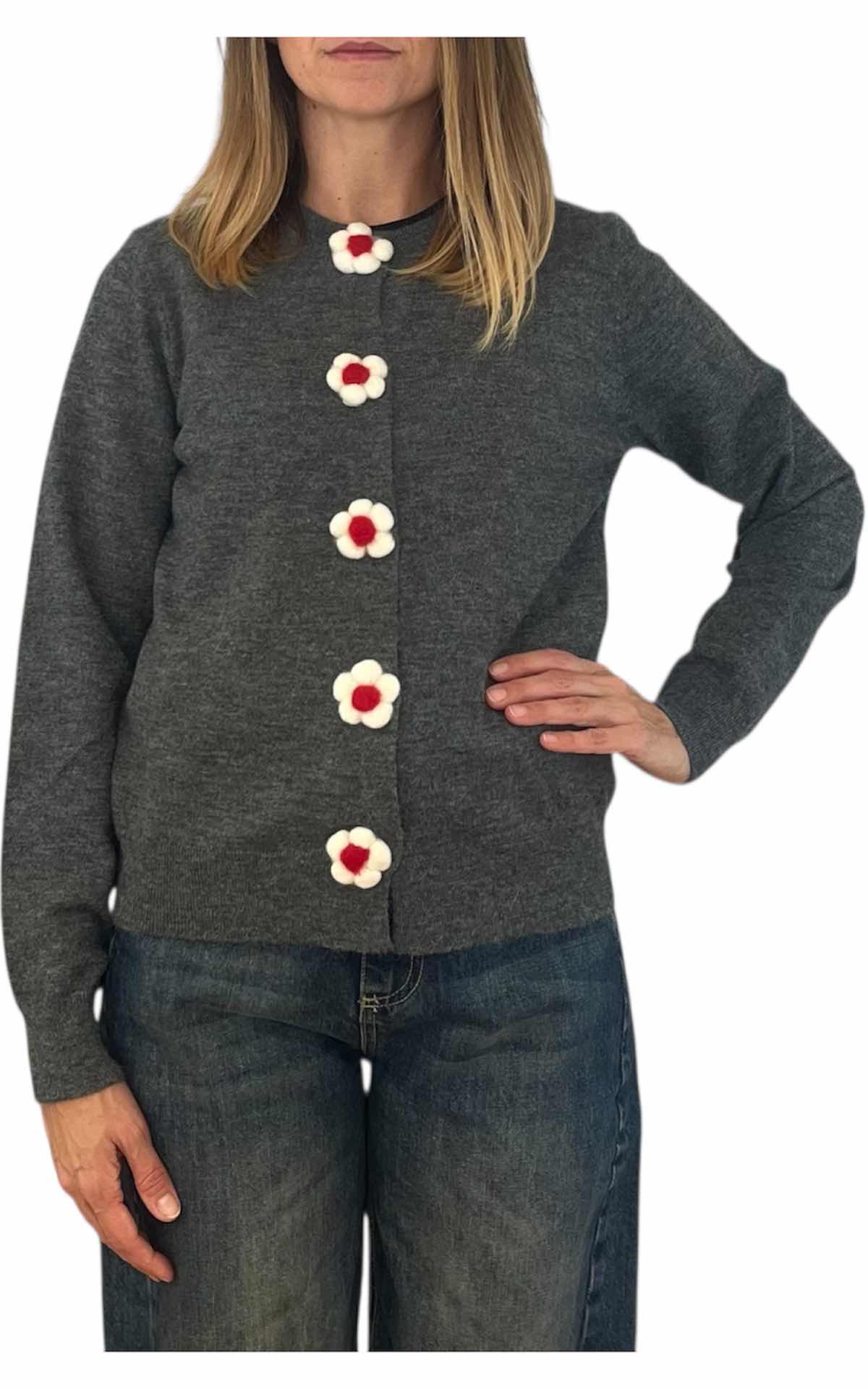 Compañía Fantástica – Cardigan bottoni fiorati – grigio