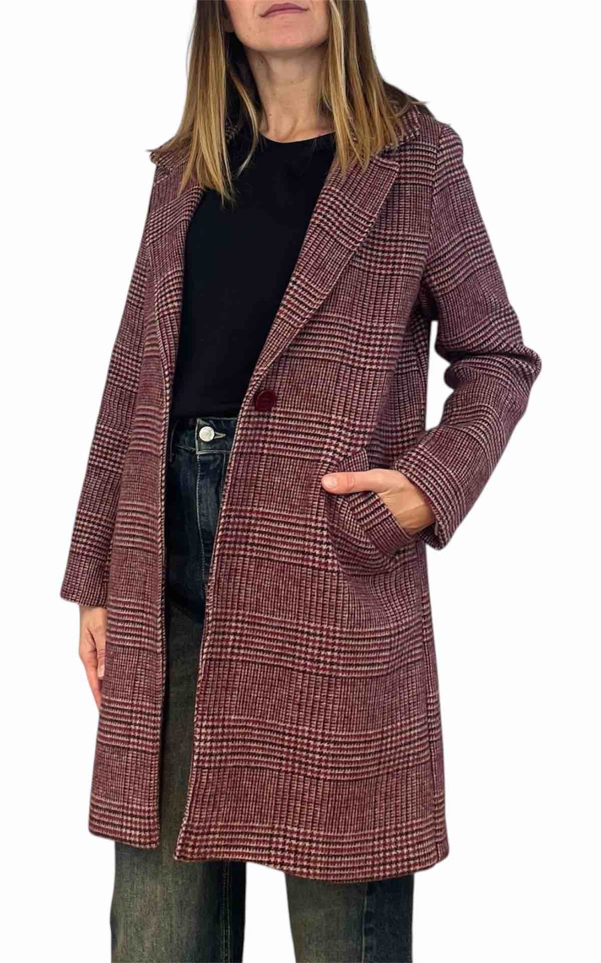 Off-On – Cappotto check – Prugna