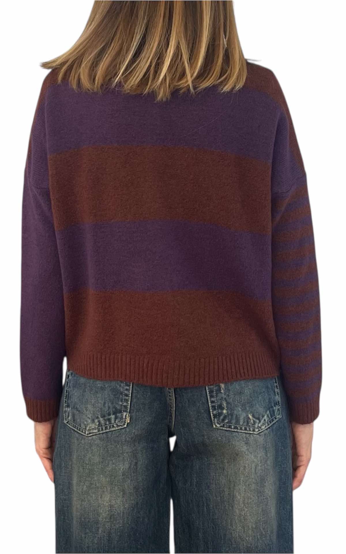 Cardigan biolore sul davanti e rigato dietro. Maniche tinta unita e rigate