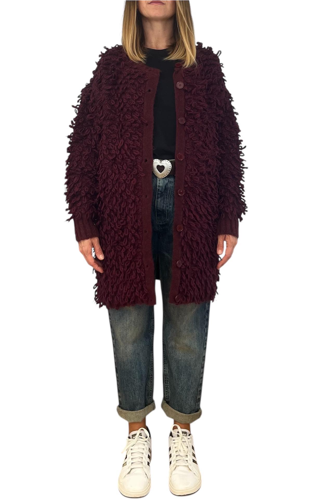 Off-On – Cardigan lungo pelliccia – Bordeaux