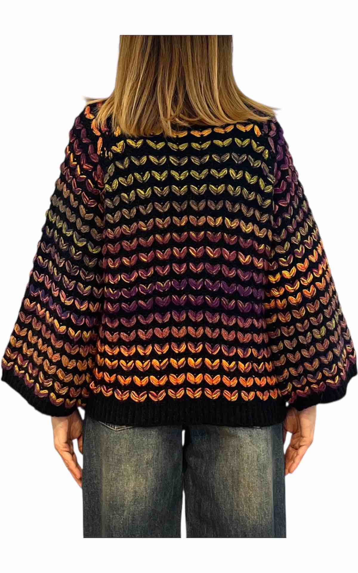 • Off-On - Maglia intarsi multicolor - grigio scuro